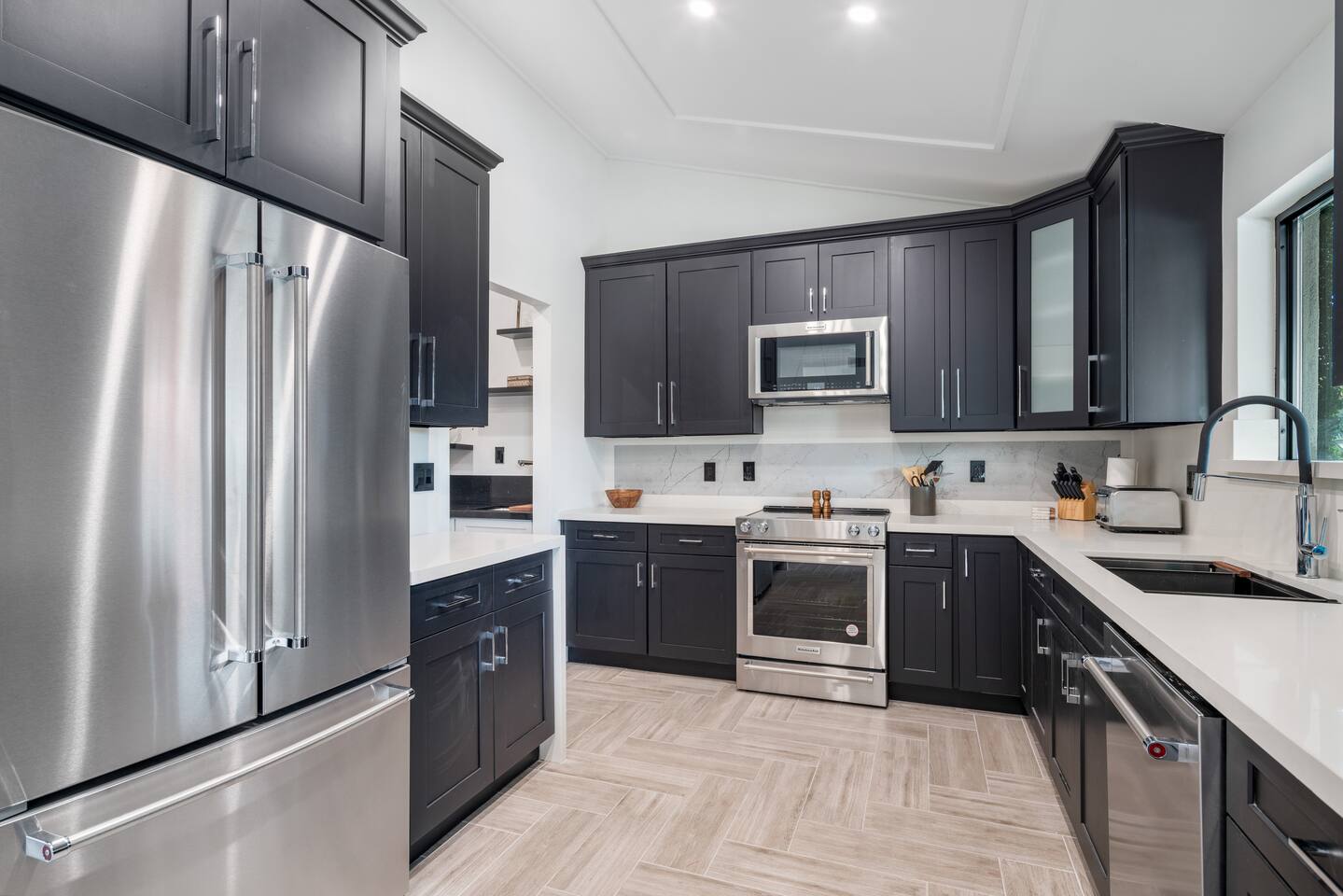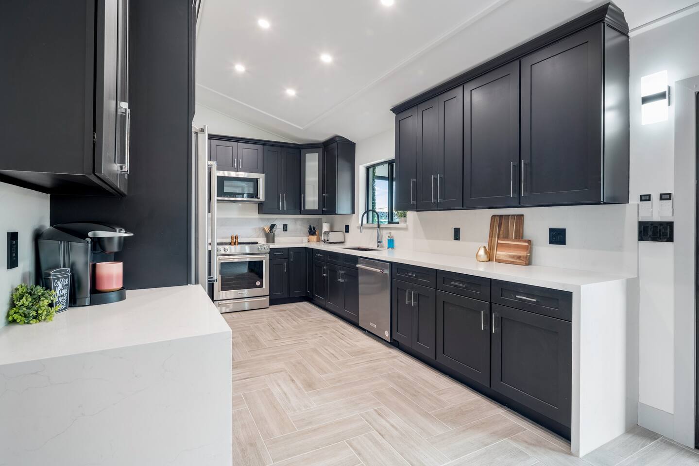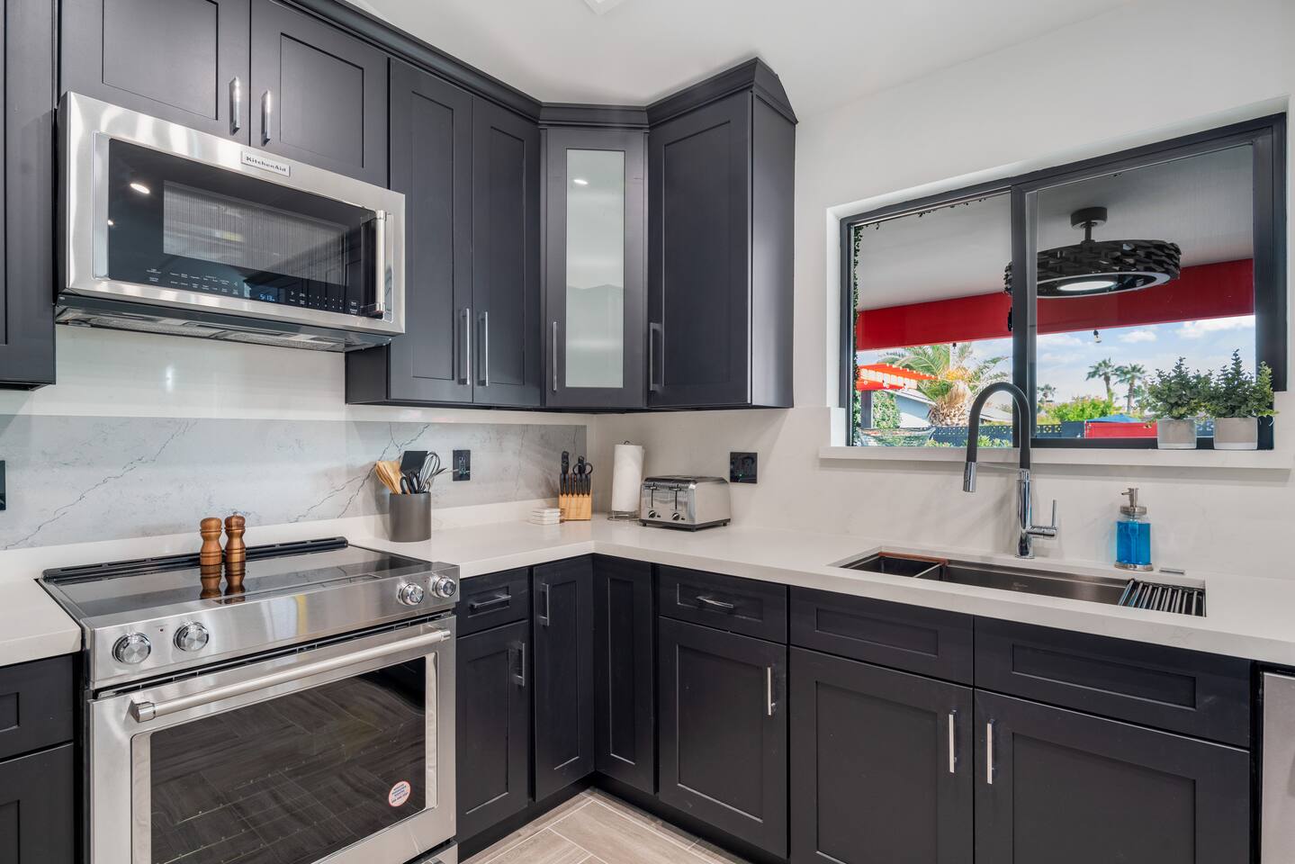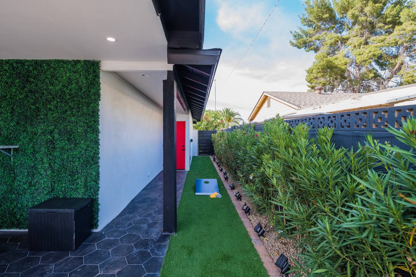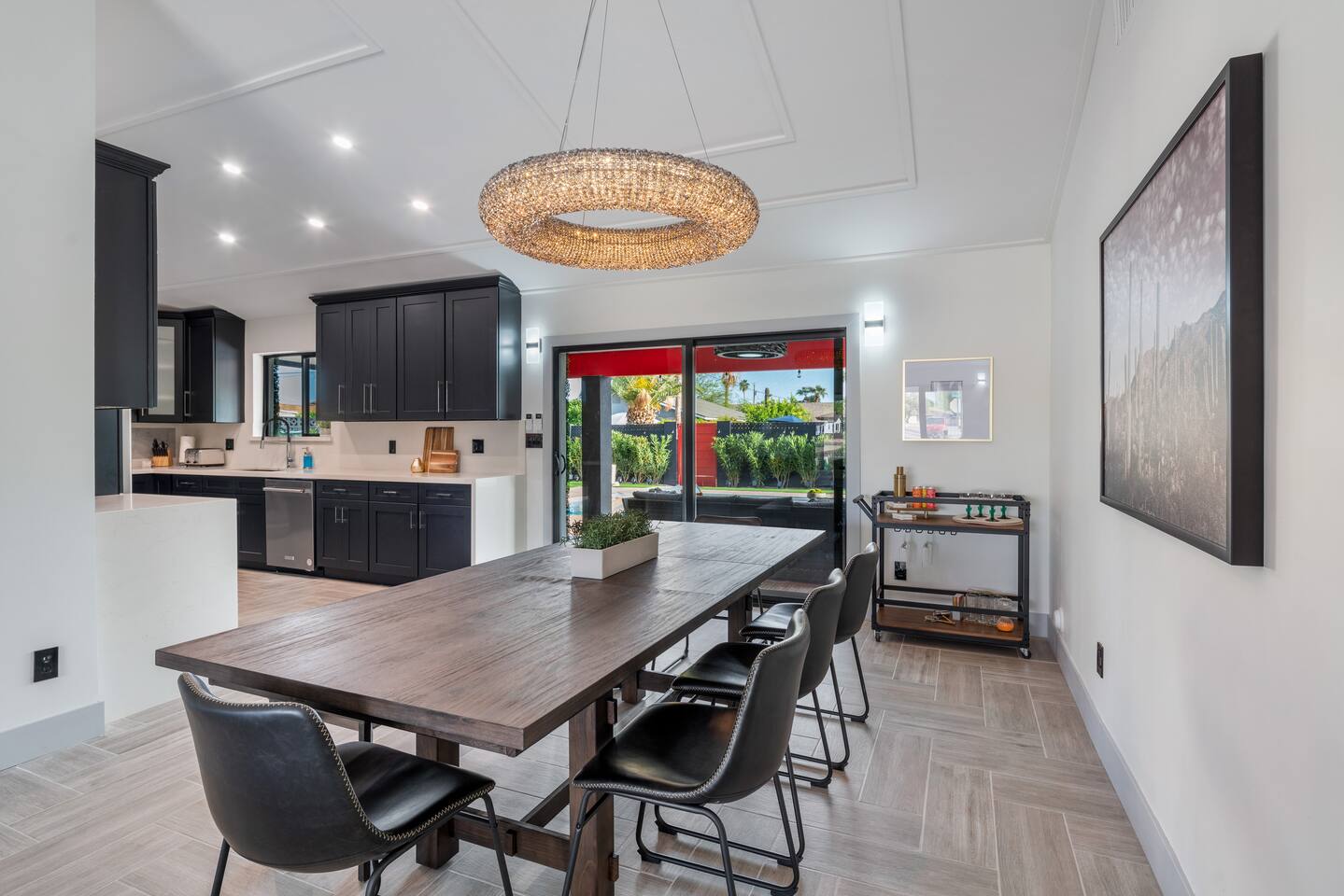This home features a spacious master bedroom with a King bed. 2 Queen bedrooms. 1 room with a bunk bed and a twin trundle bed. A Pack and Play is located in the home for the convenience of families that are visiting. The modern kitchen has stunning quartz countertops, cooking essentials and high end appliances. The large living room and dining table allow you to enjoy all the home has to offer with views of the backyard paradise! Outside you enjoy a PRIVATE HEATED POOL, corn hole, BBQ, yard games and more. With Smart TVs in each room (even outside!) you will be entertained throughout. PRIVATE attached GARAGE includes a TESLA CHARGER. Scottsdale Short Term Rental License # 2027391