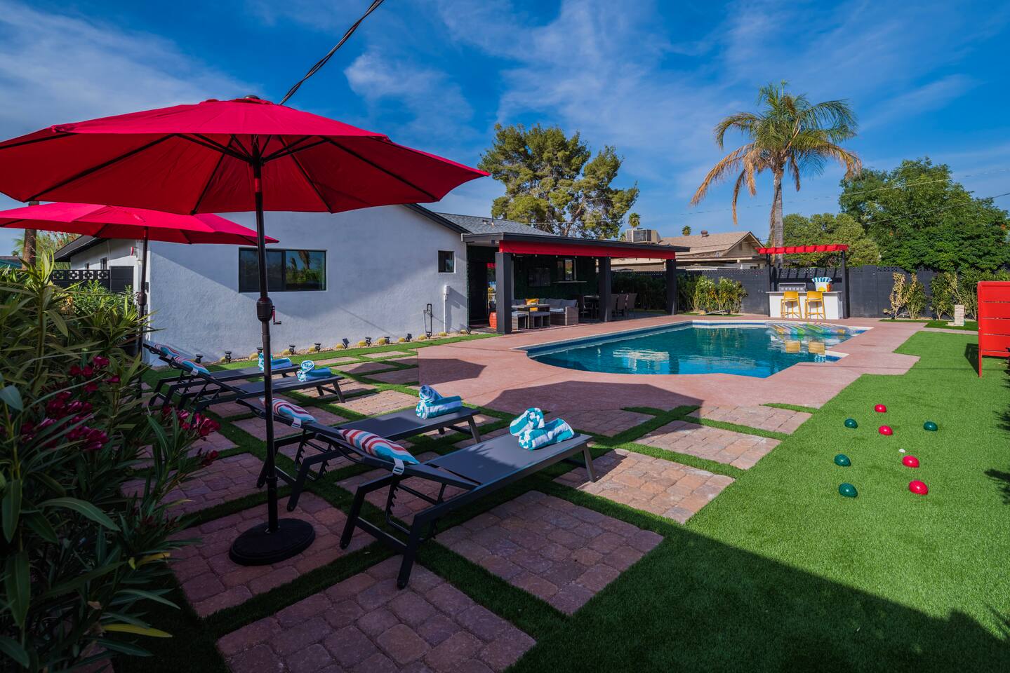 Welcome to Sol Paradise Villa! Stay in this modern, newly renovated & spacious Scottsdale home! You will enjoy touches of southwest decor throughout the home, comfortable beds, spacious kitchen with high end appliances & a BACKYARD PARADISE. Soak up the desert sun in the private backyard, cool down in the PRIVATE POOL and play yard games! A quiet community with less than a 10 MINUTE DRIVE to OLD TOWN SCOTTSDALE. Enjoy the famous shopping, dining & nightlife that the city has to offer!